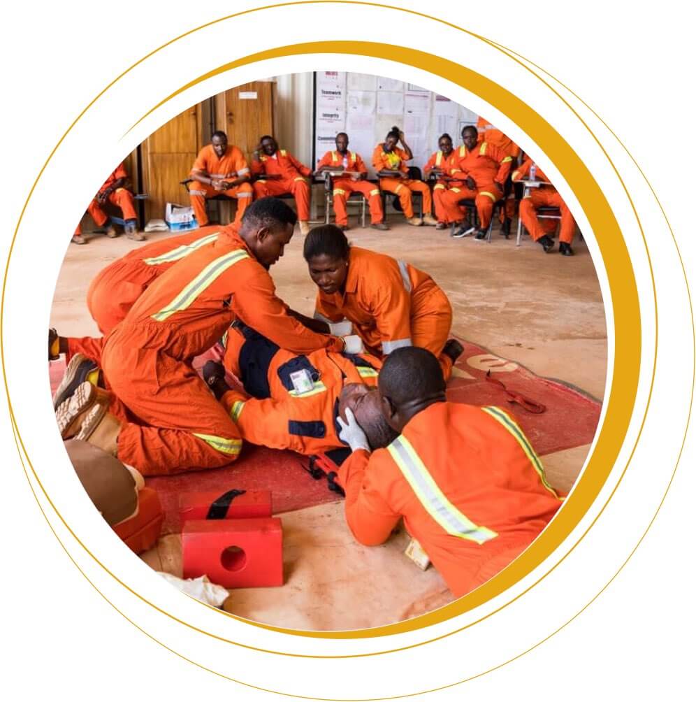 - Role-specific training as required, such as cyanide use and handling, on-site driving, and hot work